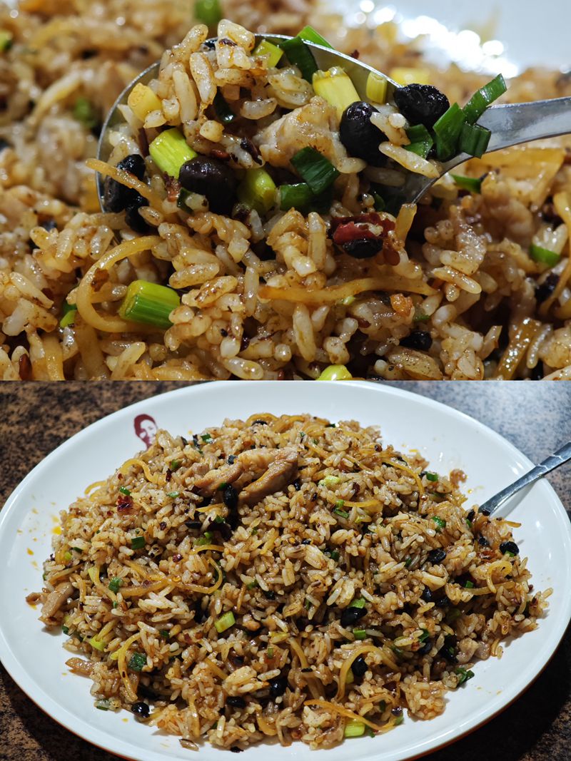 除了米粉,店内的特色炒饭系列也备受青睐,其中老干妈土豆肉丝炒饭,更是点单率TOP1。老干妈独特的香辣、土豆丝的绵软与肉丝的鲜嫩交织,米饭粒粒分明、裹满酱汁,一口下去,满是家常的烟火气,成为不少食客的心头好。