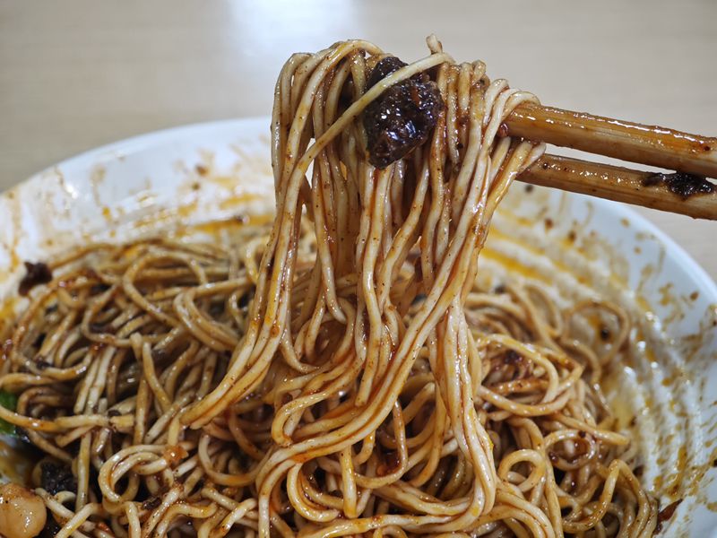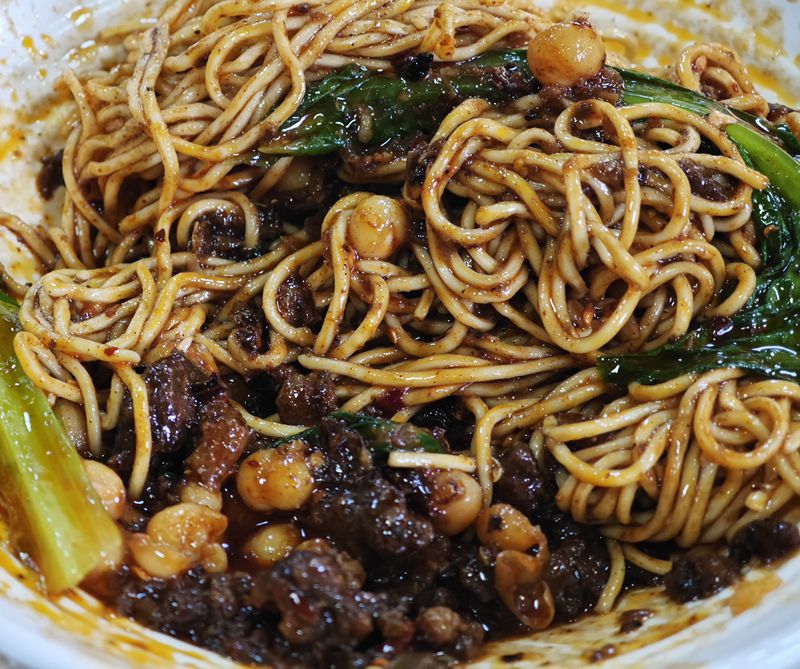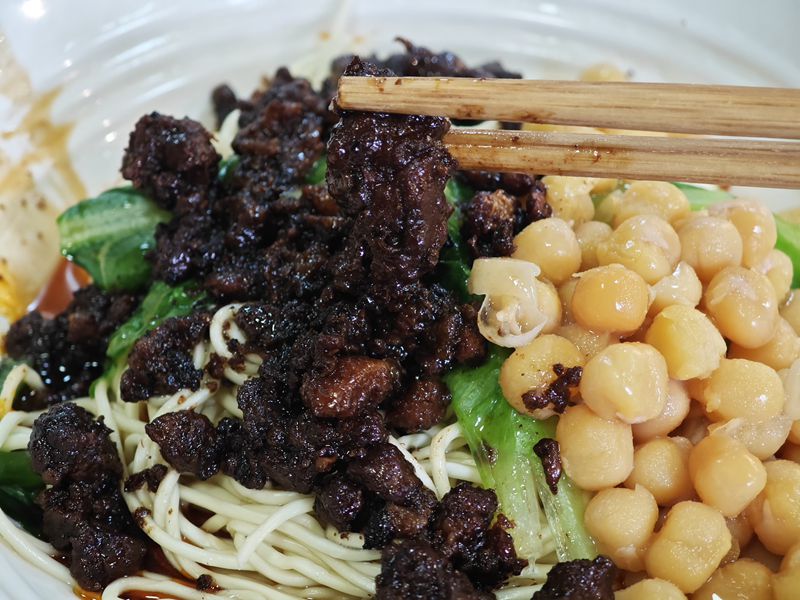 走进段玲面庄,最吸引人的莫过于那一碗招牌豌杂面。豌豆炖得耙糯绵软,入口即化,杂酱肉粒饱满,酱香浓郁。当滚烫的面条出锅,淋上杂酱和豌豆,豌豆的沙糯与颗粒分明的肉粒裹着面条的劲道在口中交织,那是一种复合的、层次分明的“麻辣鲜香”。