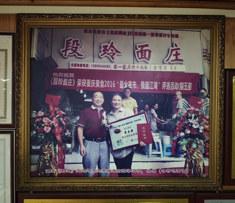 这种对小面的极致喜爱,往往藏在街头巷尾那些不起眼的老店子里。在渝中区解放碑附近的街巷深处,就有这样一家承载着老重庆记忆的免冠“段玲面庄”。自1998年创始以来,这家店便扎根于此,见证了周围商圈的繁华变迁,也守着老巷子里的一方烟火。