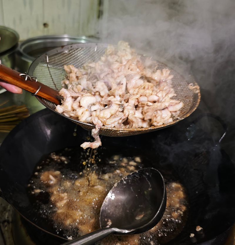 热油锁住鱼肉鲜嫩,芽菜咸香中和麻辣,层层递进的滋味没有多余修饰,精准戳中江湖菜核心。这道菜里藏着江湖菜的传承:不依赖名贵食材,只靠新鲜原料与火候把控,做出本真味道,就像当年码头边的师傅,凭着经验下料,每一口都酣畅淋漓。