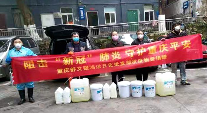 连日来,严峻的新冠肺炎疫情形势牵动着每个人的心,大家纷纷竭尽所能,为疫情防控这场没有硝烟的战争贡献力量。今日,爱心人士舒文强将其采购的400斤消毒液原液运送到渝中区民政局,希望在防疫物资紧张的当下,为有需要的地方送去一份支持。