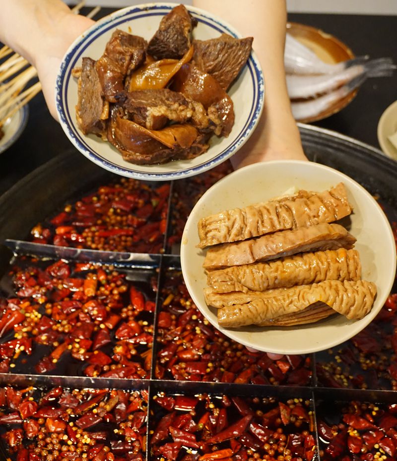 食材新鲜扎实,实打实贴合本地口味标准。新鲜的屠场鲜毛肚,口感爽脆无杂味;特色卤菜系列,下锅煮后软糯入味,耙牛肉筋道不柴、耙肥肠油润不腻,老少皆宜。现切鲜货肉类、地道山城素菜搭配齐全,配上一碗手工冰汤圆,冷热交织,刚好中和锅底热辣,口感层次恰到好处。